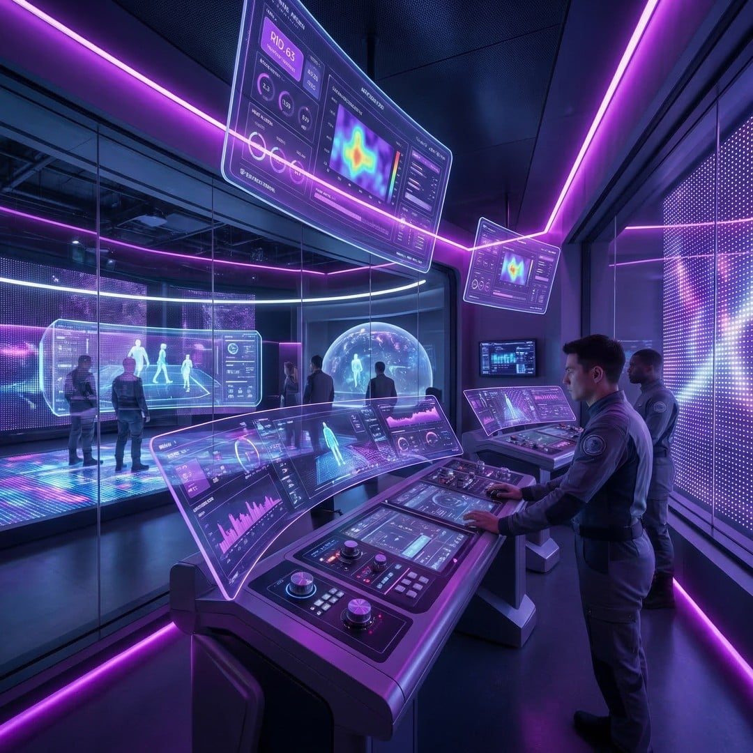 Hardware Holographic Tactical Tables, Advanced Data Visualization Terminals, and Haptic Feedback Systems.